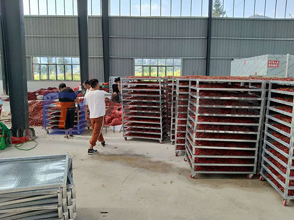 4、烘干面全。無(wú)需依靠手動(dòng)操作來(lái)改變換料車(chē)的位置,翻轉(zhuǎn)等,紅線(xiàn)椒烘干機(jī)烘干的效率更高;