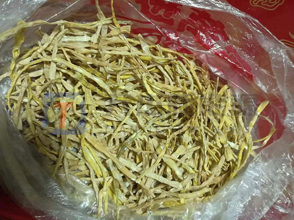 先將清洗處理好的筍體放入鍋中,再加水用猛火煮2~3小時,筍肉由白色變?yōu)橛癜咨S體變軟,留心每煮2~3鍋后要換水一次,不然筍干易變色,竹筍的質量和營養(yǎng)價值都會減少,煮熟的竹筍從鍋里撈出后,在進行冷水漂洗,晾干到竹筍表面水分蒸發(fā)后,再將漂洗過的筍體分層交織式的平整放在榨機內(nèi),逐漸加壓,經(jīng)1~2小時后,松榨再加重物重壓,直到榨出的水帶有泡沫且略帶赤色,壓榨就完成了。
